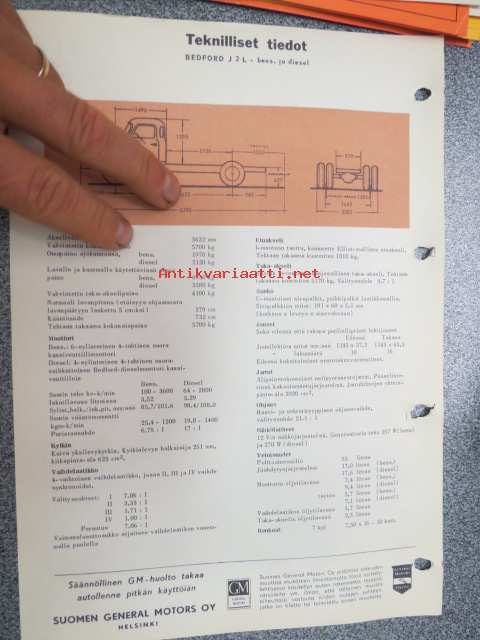 Bedford J 2 L bensiini ja diesel - teknilliset tiedot -myyntiesite