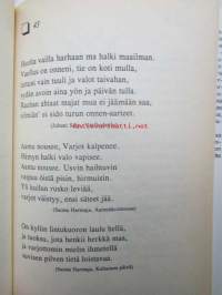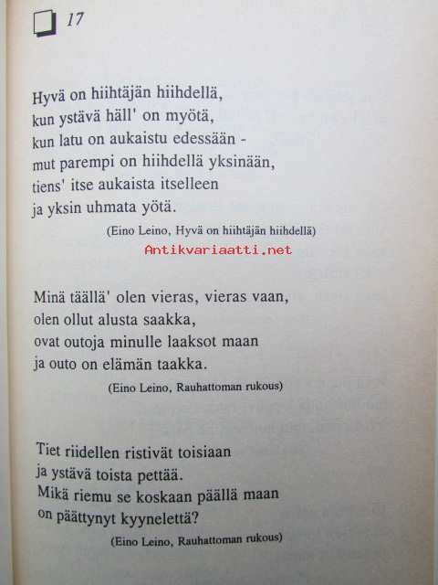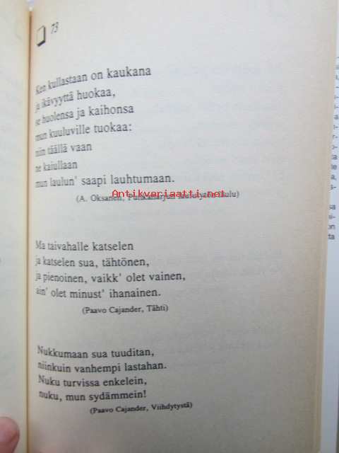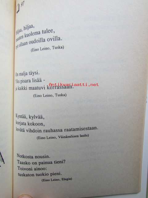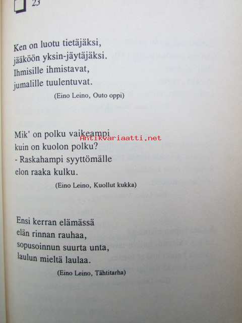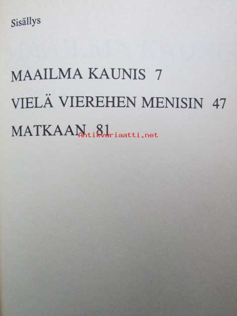 | Saatavilla | 1 kpl | | Julkaisuvuosi | 1994 | | Sivuja | 113 | | Kunto | K3 | | Sidonta/painoasu | Sidottu (kansipaperit) | | ISBN | 951-23-3356-2 | | Kielet | Suomi |