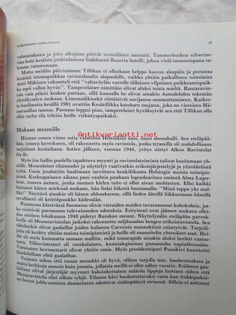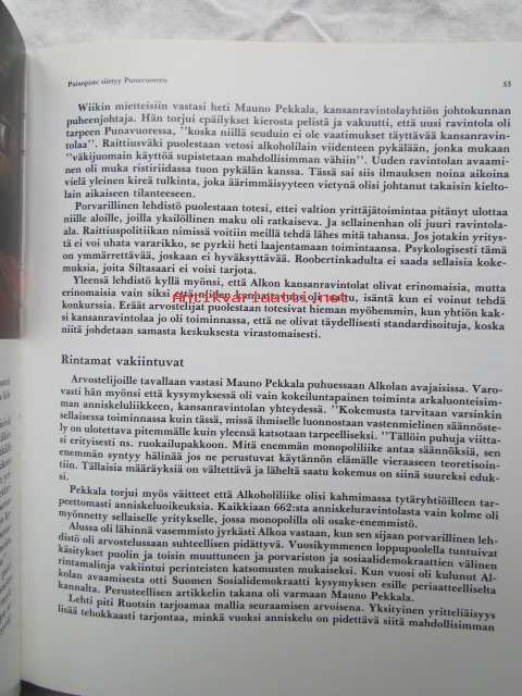 | Saatavilla | 1 kpl | | Julkaisuvuosi | 1985 | | Sivuja | 137 | | Painos | 1. | | Kunto | K3 | | Sidonta/painoasu | Sidottu (kovak.) | | ISBN | 951-99662-0-X | | Kielet | Suomi |