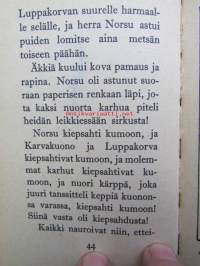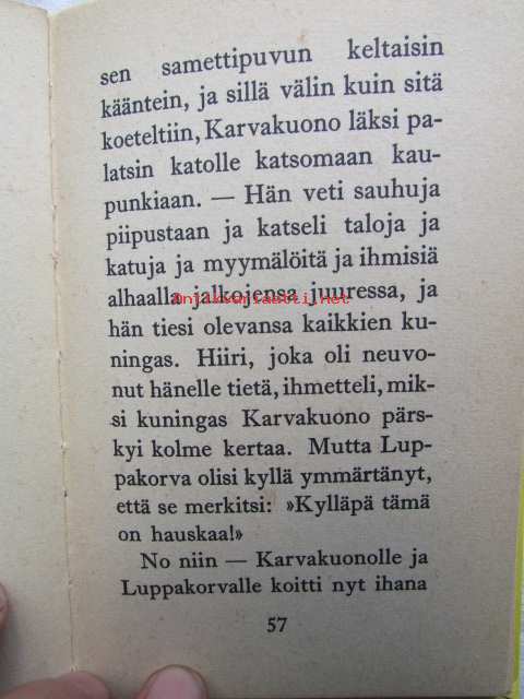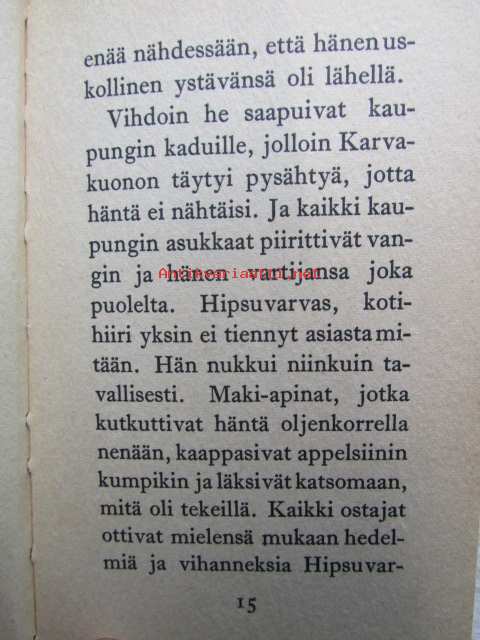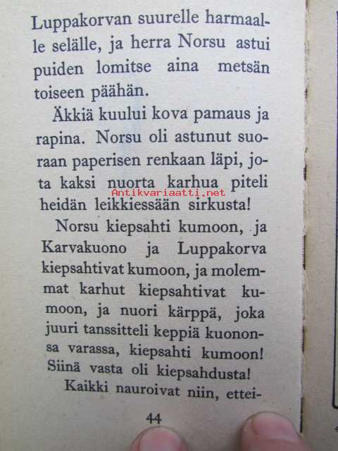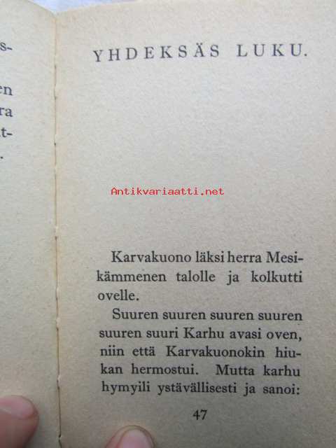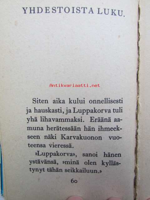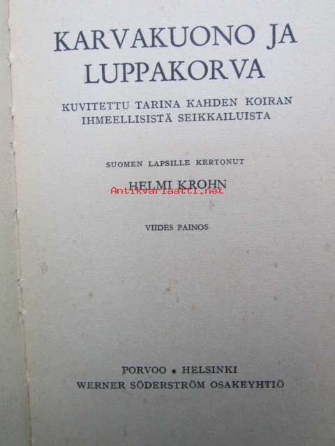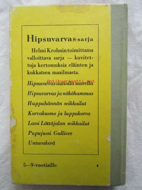 | Saatavilla | 1 kpl | | Julkaisuvuosi | 1965 | | Sivuja | 65 | | Painos | 5. | | Kunto | K2 | | Joitakin kuvia on väritetty | | Sidonta/painoasu | Kuvitettu kovakantinen | | Kielet | Suomi |