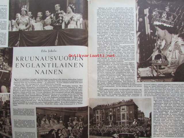 Kotiliesi 1953 nr 13-14 heinäkuu -mm. Kesäloman leikkitoverit, Hellin Mustala piha kukkii koko kesän, Elisabeth II Kruunausvuoden englantilainen nainen,