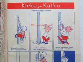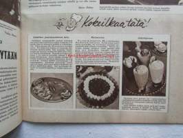 Kotiliesi 1953 nr 13-14 heinäkuu -mm. Kesäloman leikkitoverit, Hellin Mustala piha kukkii koko kesän, Elisabeth II Kruunausvuoden englantilainen nainen, Jäätelöjuoma, Marjatorttu, Kalafilee juustokastike, Tarkastele kuvista tarkemmin sisältöä.21 x 29 cm.