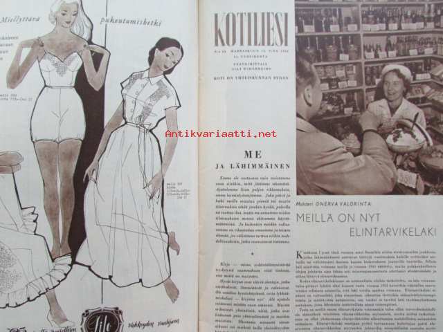 Kotiliesi 1953 nr 22 -mm. Kaunis käytös hyvä eväs elämään, Taiteellisia tyttöjä, Lääket.lis. Riitta Juva kun tytöstä tulee nainen, Makkarapata, Kuminakaali, Suurustettu kasviskeitto, Punajuurikeitto, Tarkastele kuvista tarkemmin sisältöä.21 x 29 cm.