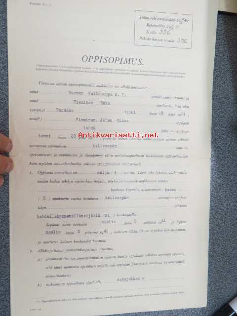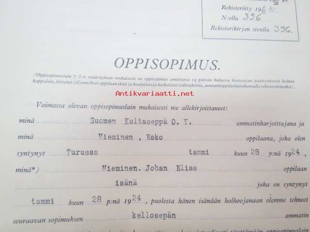 Oppisopimus - Suomen Kultaseppä Oy / Esko Nieminen 5.3.1941