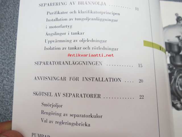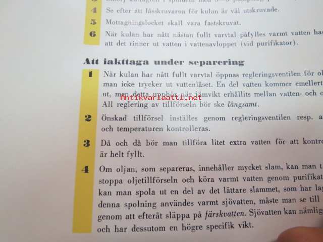 Alfa-Laval - Separering av oljor för marina ändamål -öljyjen separointi, laivoja koskevaa teknistä tietoa ym.