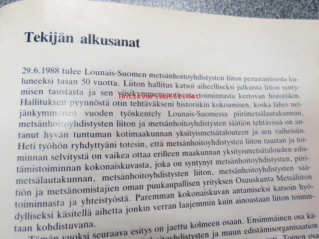 Metsätaloudellista yhteistoimintaa Lounais-Suomessa - Lounais-Suomen metsänhoitoyhdistysten liitto 1938-1988, Lounais-Suomen metsänhoitoyhdistysten säätiö 1938-1988