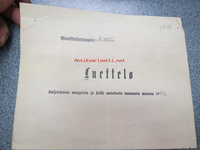 Vankikuljettajapiiri: Kittilä - Luettelo kuljetetuista wangeista ja heille annetusta muonasta vuonna 1903 - Wanki Frans Oskar Heinonen, Merikarvian seurakunnasta Turun ja Porin lääniä - Kittilästä Rovaniemelle, 7.12.1903 - "Wangin kulettaja A. Uusisalmi" -asiakirja