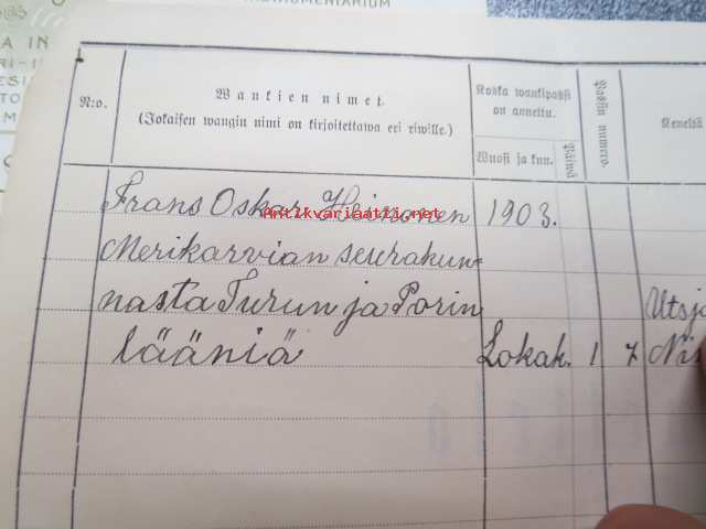 Vankikuljettajapiiri: Kittilä - Luettelo kuljetetuista wangeista ja heille annetusta muonasta vuonna 1903 - Wanki Frans Oskar Heinonen, Merikarvian seurakunnasta