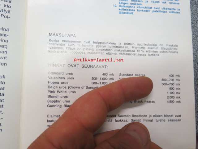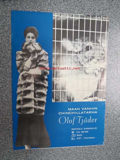 Maan vanhin chincillatarha Olof Tjäder, Rastaala, Karakallio -tarhaajan ja siitoseläinten tuottajan mainosesite aikansa "huippubisneksestä"