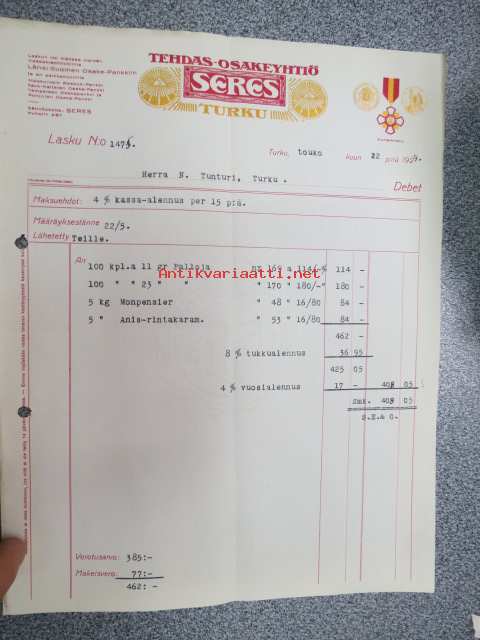 Tehdas Osakeyhtiö Seres, Turku 22.5.1929 -asiakirja