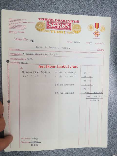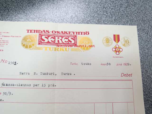 Tehdas Osakeyhtiö Seres, Turku 30.5.1929 -asiakirja