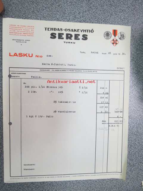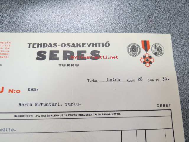 Tehdas Osakeyhtiö Seres, Turku 28.7.1930 -asiakirja