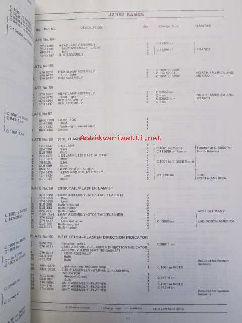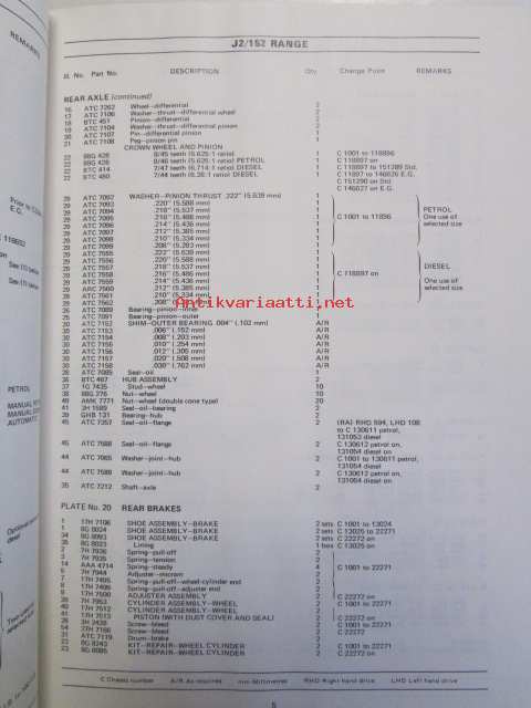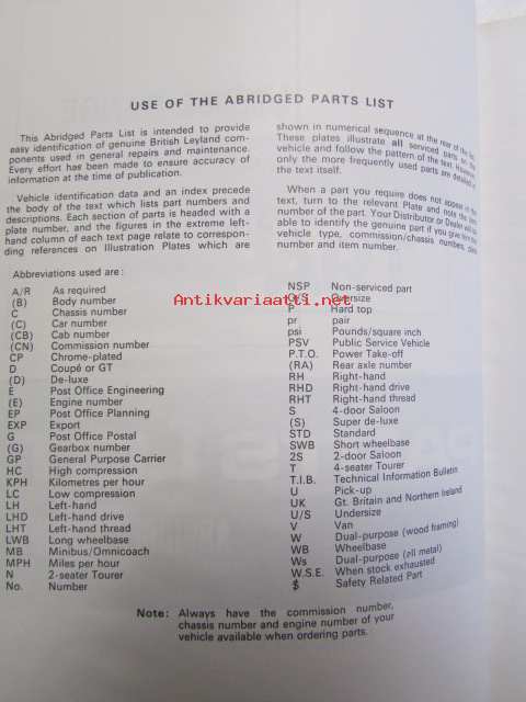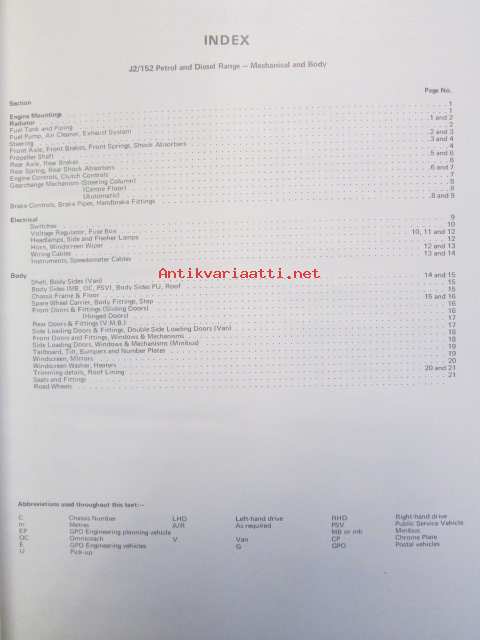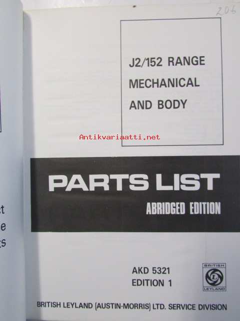 British Leyland J2 / 152 Range Mechanical and body, Parts List abridged AKD 5321 Edition 1 - varaosaluettelo, Katso kuvista tarkempi sisältö