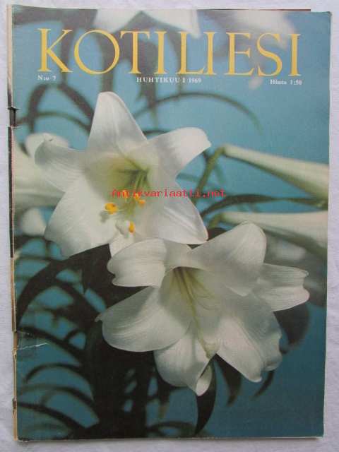 Kotiliesi 1969 nr 7 -mm. Lempäälän palvelukodin Ehtookoto johtaja Annikki Soini, Tuntematon rouva Nixon, Oikea kasvi oikeaan paikkaan, Maatalouden tulevaisuus Mansholt-suunnitelman mukaan, Kanasalaatti, Charlotte Russe, Täytetyt päärynäpuolikkaat, Kalasalaatti, Katso kuvista tarkempi sisältö ja mainoskuvat.21 x 29 cm.