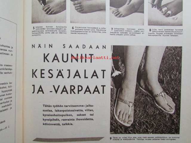 Kotiliesi 1964 nr 11 -mm. Kauniit kesäjalat ja -varpaat, Napit ja näpinlävet, Maatilan kylmäsäilytyshuone, Käytännön kaloritaulukko, Maalaistalon puutarha,