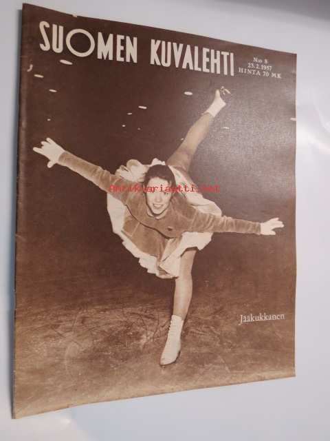 Suomen Kuvalehti 1957 nr 8, Matti Kurjensaari kirje Pariisista Mika Waltarille, presidentti Kekkonen - Tapani Löfvingin hiihto (40 km)