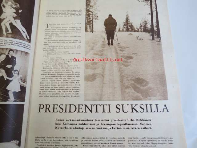 Suomen Kuvalehti 1956 nr 9, presidentti suksilla, suomalainen herrasmies, Valentin ikää pakoon - Skelskör, mies ja kymmenen tuhatta pommia vaarattomaksi tehnyt (Walter Merz)