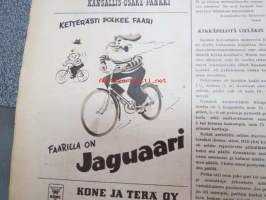 Suomen Kuvalehti 1954 nr 43, 23.10.1954, sis. mm. seur. artikkelit / kuvat / mainokset; Kansikuva Nahkakonventin riemua, Täysosuma karamellit, Lapin maalari Eino