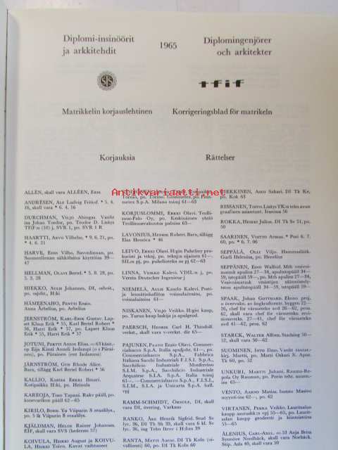 Diplomi-insinöörit ja arkkitehdit / Diplomingenjörer och arkitekter 1965