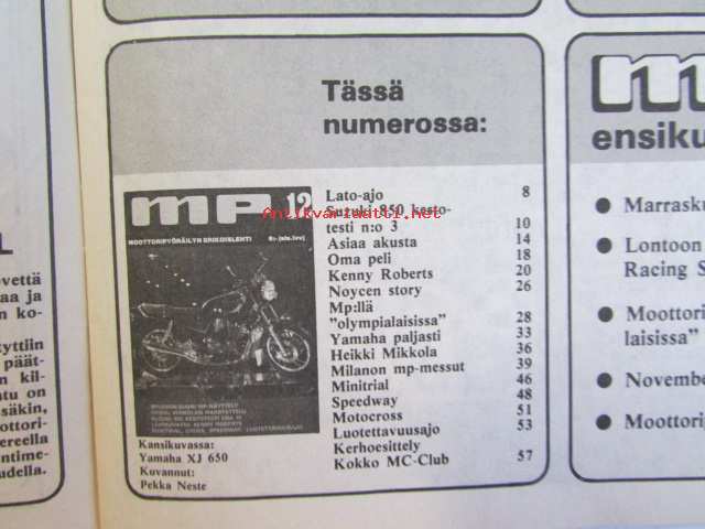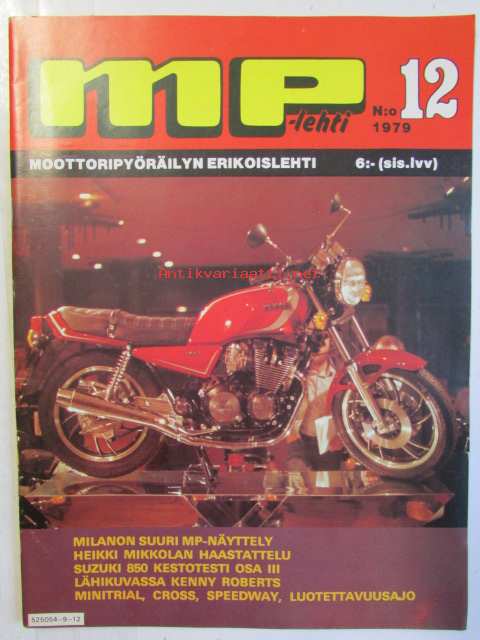 MP-Lehti 1979 nr 12 -mm. Kenny Roberts, Heikki Mikkola, Milanon MP messut, Kokko MC-Club, Suzuki 850 kestotesti, katso kuvista tarkempi sisältö.