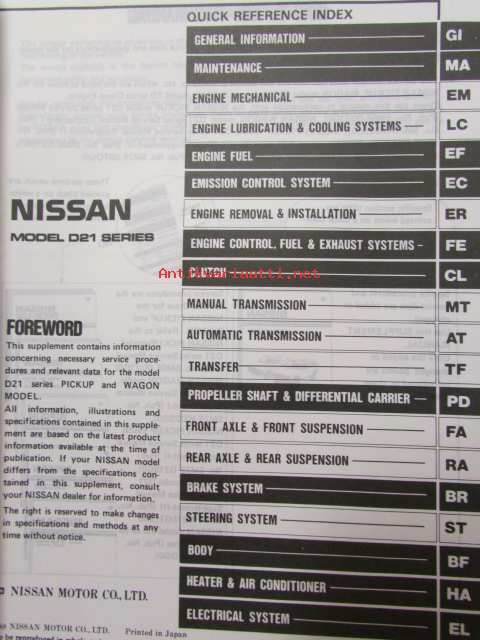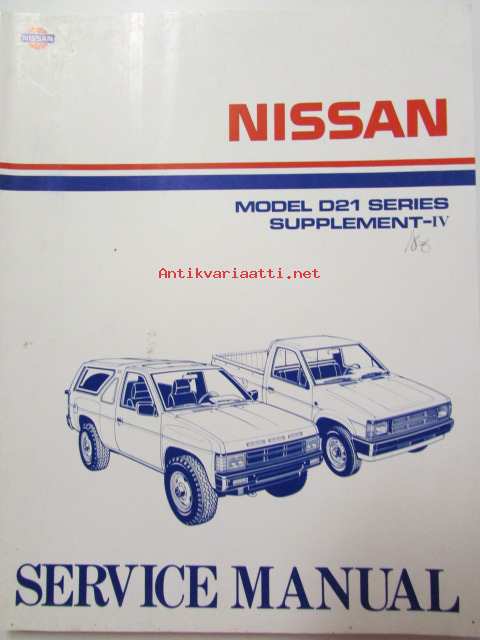 Nissan model D21 series Service manual supplement IV - korjaamokäsikirjan lisäosa, katso kuvista tarkemmin sisältöä