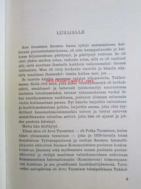 Tuominen Arvo, Tammi, 195615 x 21 cm.