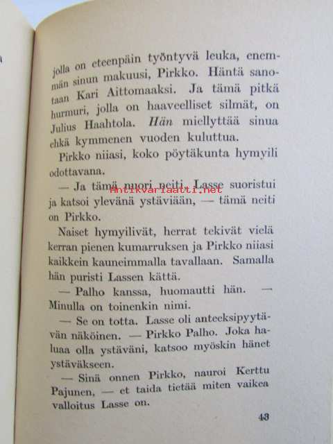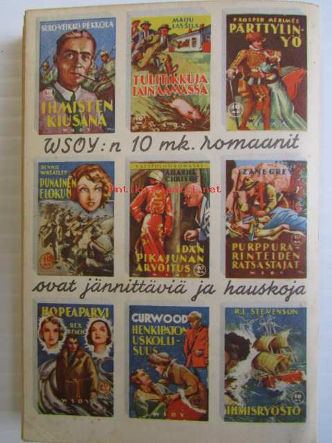 | Saatavilla | 1 kpl | | Julkaisuvuosi | 1940 | | Sivuja | 202 | | Painos | 1. | | Kunto | K3 | | Sidonta/painoasu | Nidottu (pehmeäk.) | | Kielet | Suomi |