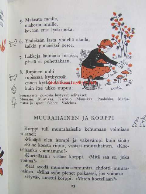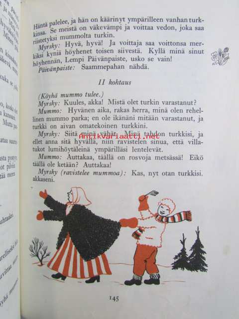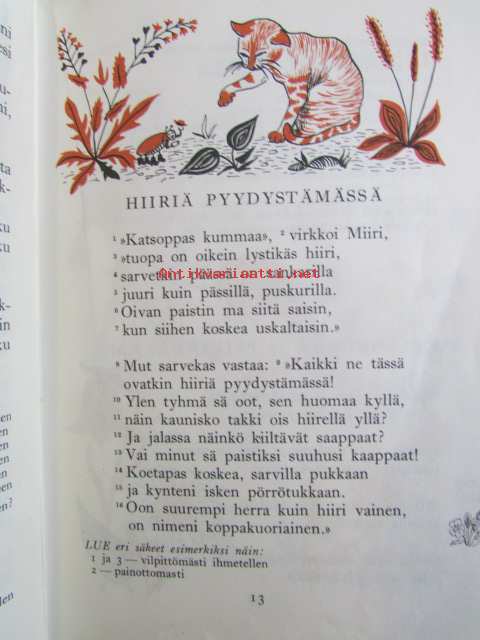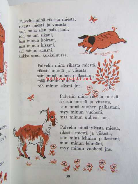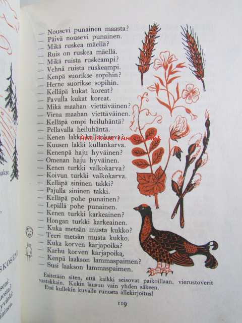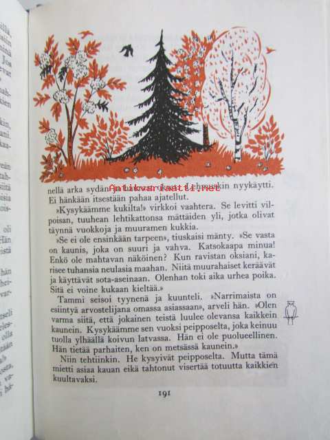 | Saatavilla | 1 kpl | | Julkaisuvuosi | 1962 | | Sivuja | 204 | | Painos | 6. | | Kunto | K2 | | kirja alussa on sidos irti, mutt edelleen kiinni, katso kuvasta tarkemmin | | Sidonta/painoasu | Kuvitettu kovakantinen | | Kielet | Suomi |