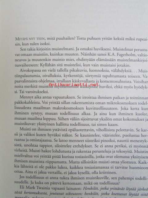 | Saatavilla | 1 kpl | | Julkaisuvuosi | 1999 | | Sivuja | 381 | | Painos | 3. | | Kunto | K3 | | Sidonta/painoasu | Sidottu (kansipaperit) | | ISBN | 951-1-15315-3 | | Kielet | Suomi |