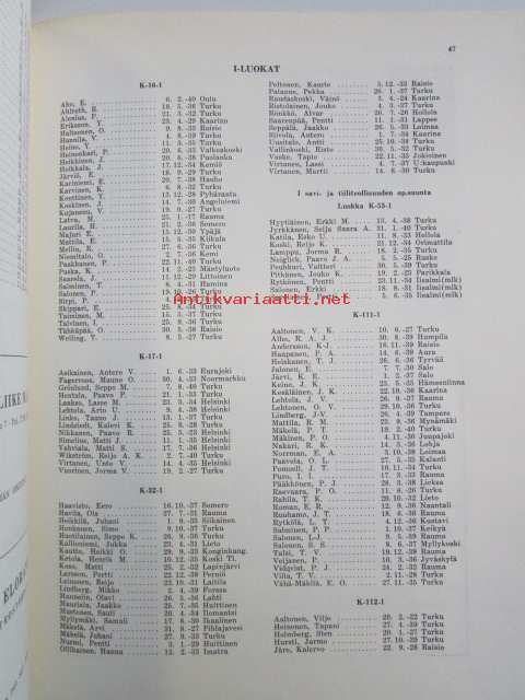 Turun Teknillinen koulu kurssijulkaisu 1956-59