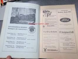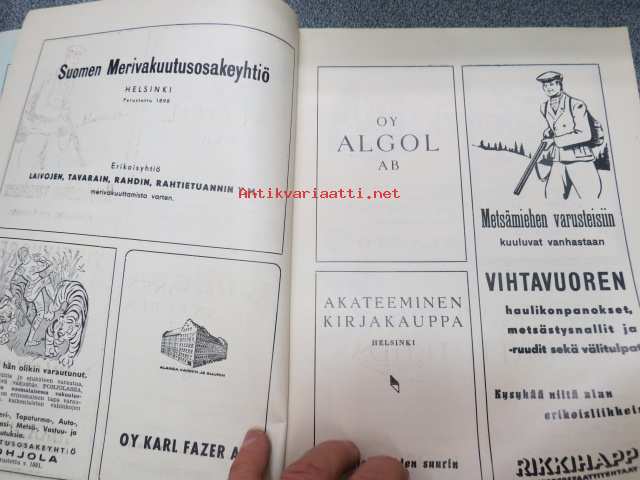 | Saatavilla | 1 kpl | | Julkaisuvuosi | 1948 | | Sivuja | 48 | | Painos | 1. | | Kunto | K2 | | Sidonta/painoasu | Nidottu (pehmeäk.) | | Kielet | Suomi |