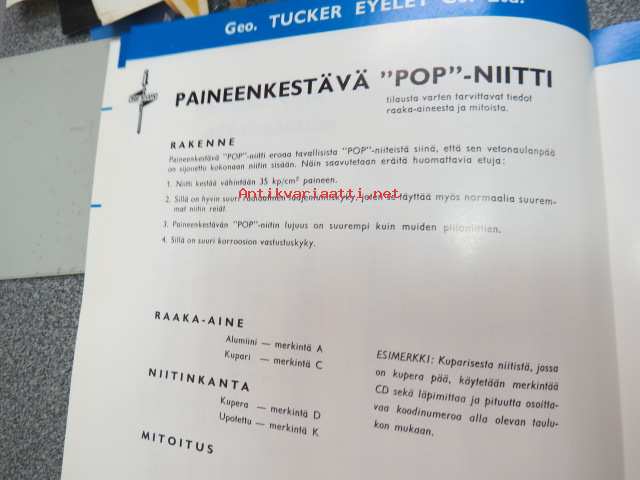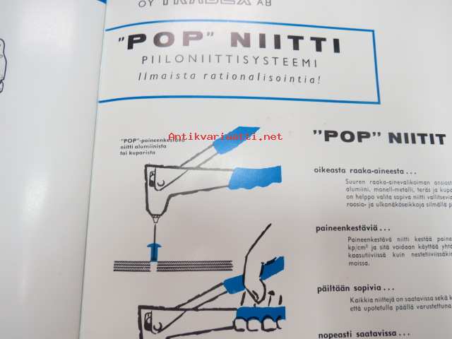 Pop-niitti - voittoa joka niitillä -esite niiteistä ja työkaluista niiden kiinnittämiseen