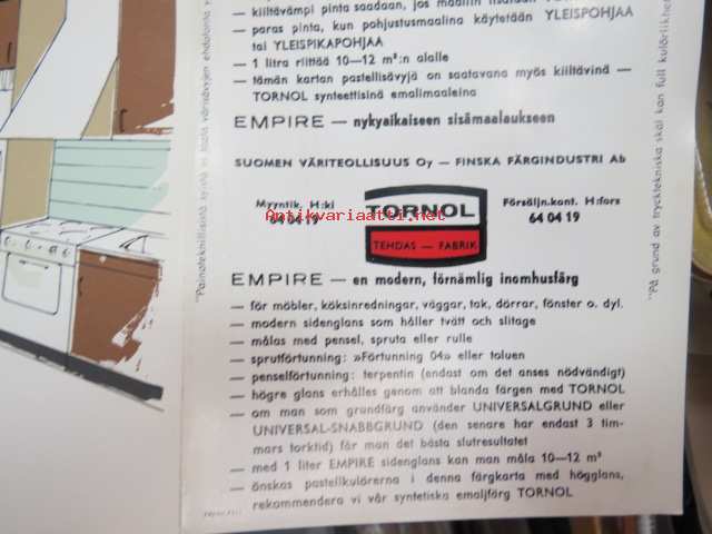 Empire silkinkiiltoinen / sidenglans - Suomen Väritehdas Oy Tornol -värikartta / esite