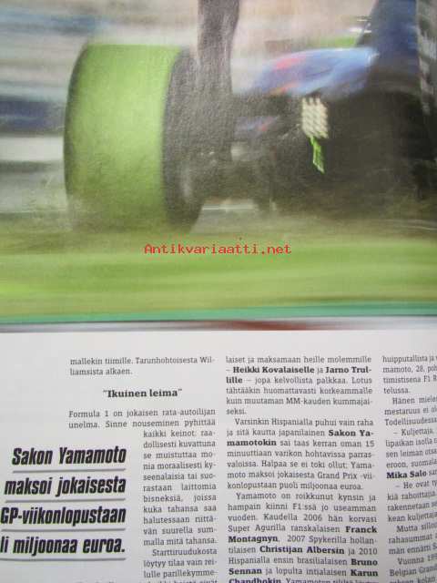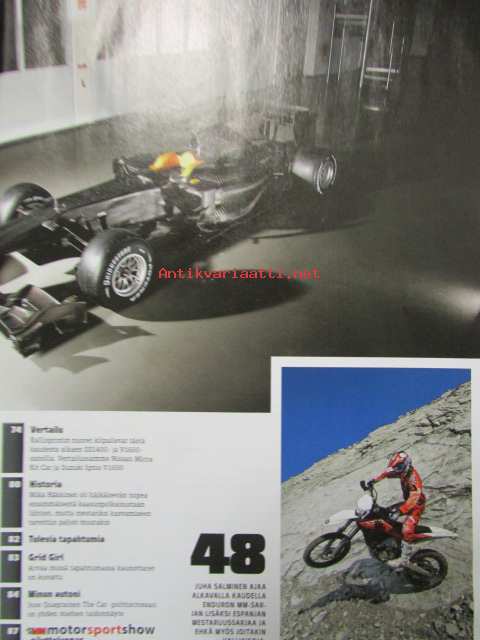 Vauhdin Maailma 2011 nr 1 -mm. Jussi HOnka Ski-Doo MXZ 600 RS:n, F1 Toyota TF110, Artic Lappland Tally, Jarmo Mahonen, Mr Enduro Juha Salminen Husqvarna, Emmi