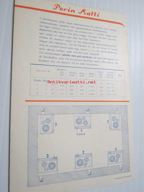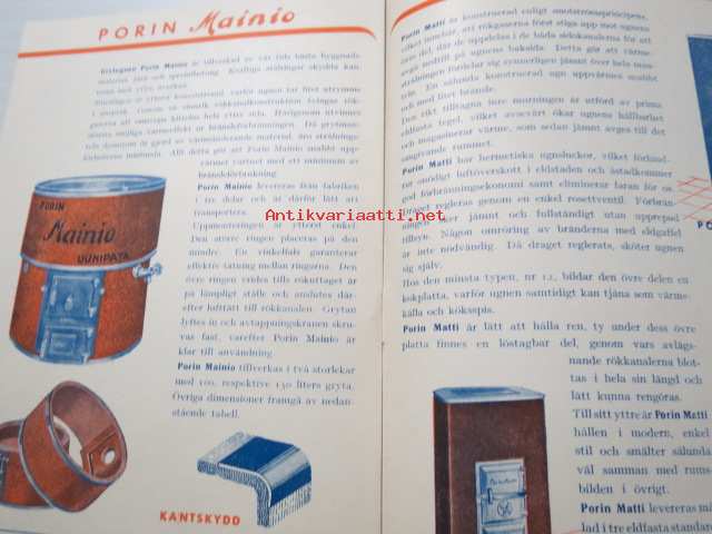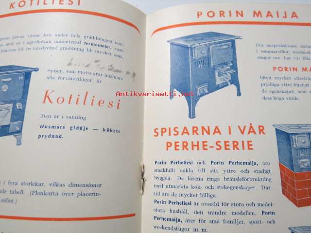 Björneborgs spisar och ugnar -myyntiesite, ruotsinkielinen, mm. Kotiliesi, Perheliesi, Porin Maija, Porin Matti, Porin Mainio