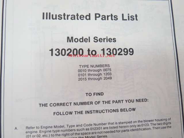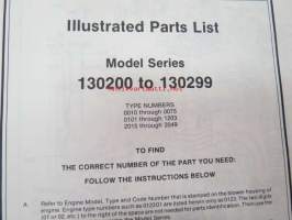 Briggs & Stratton Illustrated Parts List Model Series 130200 to 130299 varaosaluettelo, tyypit näkyvät kuvissa