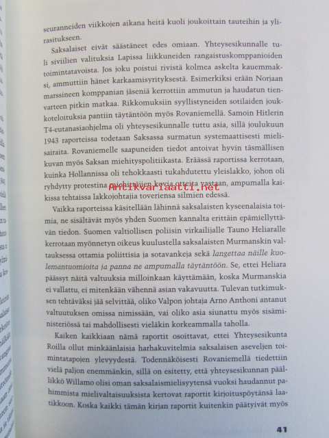 | Saatavilla | 1 kpl | | Julkaisuvuosi | 2005 | | Sivuja | 288 | | Painos | 1. | | Kunto | K3 | | Sidonta/painoasu | Kuvitettu kovakantinen | | ISBN | 951-0-30421-2 | | Kielet | Suomi |