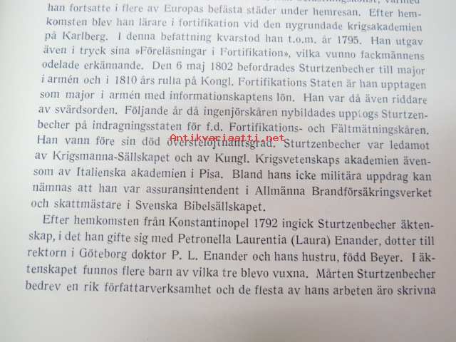 Mårten Sturtzenbechers dagbok 1875-1790 jämte en kort biografi, Ruotsin armeijan linnoitusupseerin päiväkirja, jossa mm. merkintöjä oleskelusta Suomessa rintamalla, Suomenlinnassa, Hämeenlinnassa jne. Toki suurin osa merkinnöistä tuolta viiden vuoden ajanjaksolta on Ruotsista