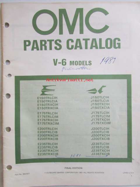 OMC - Evinrude Parts catalog V-6 Models 1981 - Perämoottorin varaosaluettelo v.1981, Katso kuvista tarkempi malliluettelo ja sisältö.