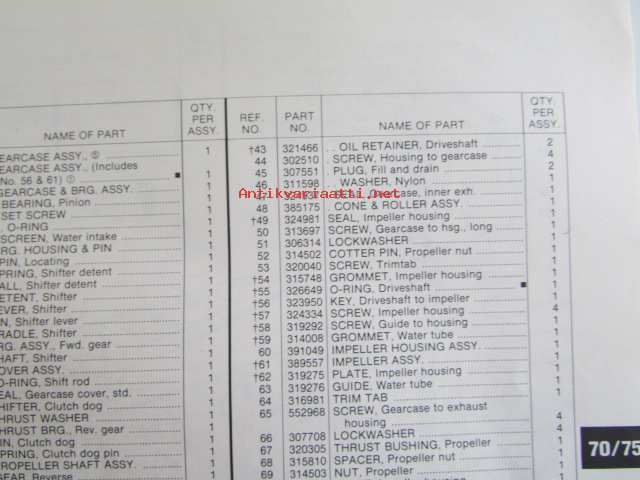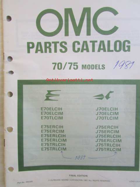 OMC - Evinrude Parts catalog 70/75 Models 1981 - Perämoottorin varaosaluettelo v.1981, Katso kuvista tarkempi malliluettelo ja sisältö.