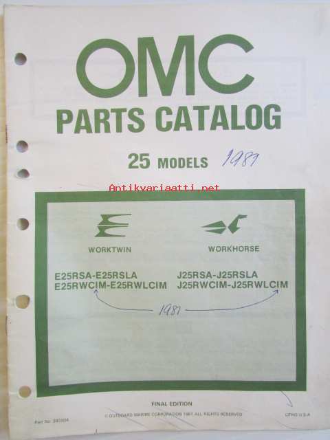 OMC - Evinrude Parts catalog 25 Models 1981 - Perämoottorin varaosaluettelo v.1981, Katso kuvista tarkempi malliluettelo ja sisältö.