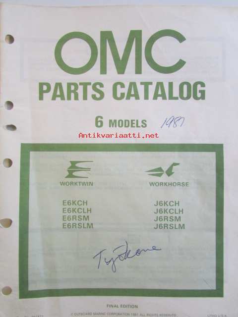 OMC - Evinrude Parts catalog 6 Models ( työkone ) 1981 - Perämoottorin varaosaluettelo v.1981, Katso kuvista tarkempi malliluettelo ja sisältö.