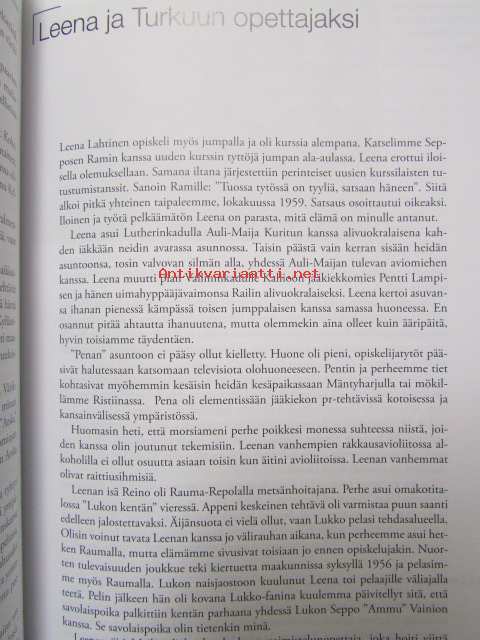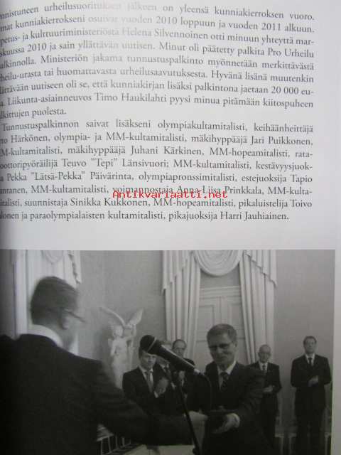 | Saatavilla | 1 kpl | | Julkaisuvuosi | 2011 | | Sivuja | 224 | | Painos | 2. | | Kunto | K3 | | Sidonta/painoasu | Kuvitettu kovakantinen | | ISBN | 978-952-67019-6-7 | | Kielet | Suomi |