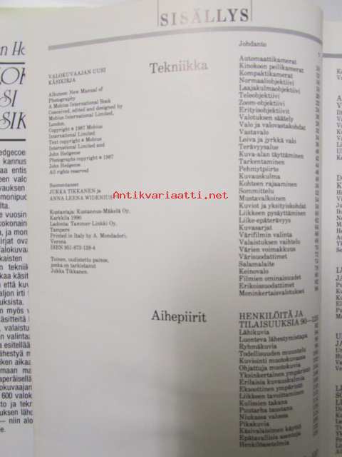 | Saatavilla | 1 kpl | | Julkaisuvuosi | 1990 | | Sivuja | 288 | | Painos | 2. | | Kunto | K3 | | Sidonta/painoasu | Sidottu (kansipaperit) | | ISBN | 951-873-128-4 | | Kielet | Suomi |