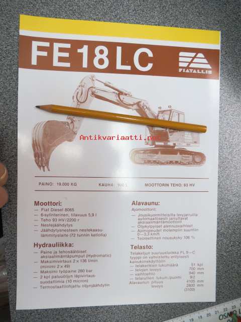 Fiat-Allis FE 18 LC kaivinkone -myyntiesite