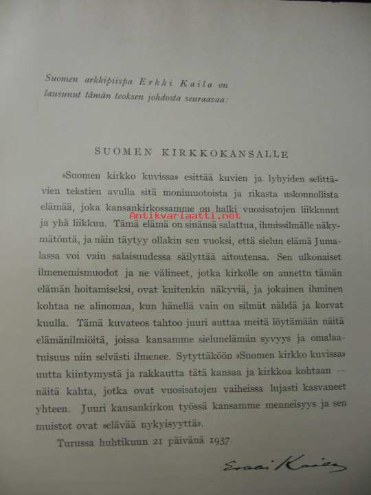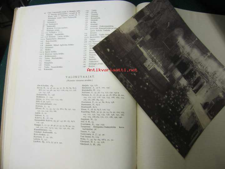 Rinne E, Viherjuuri H J, Sormunen Eino, Lehtonen Aleksi, Otava, 19378 sivua tekstiä, muuten kirja koostuu ruskeasävyisistä kuvista.