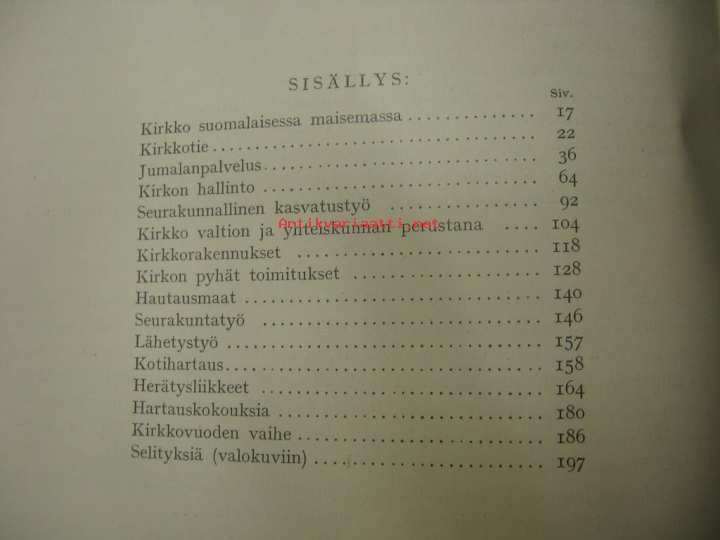 | Saatavilla | 1 kpl | | Julkaisuvuosi | 1937 | | Sivuja | 196 | | Painos | 1 | | Kunto | K3 | | Kangaskannet tyydyttävät, sivut kellastuneet | | Sidonta/painoasu | Sidottu (kovak.) | | Kielet | Suomi |