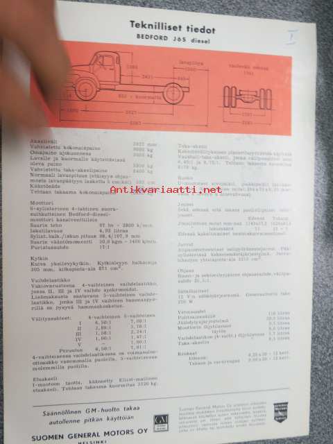 Bedford J 6 S diesel - teknilliset tiedot -myyntiesite