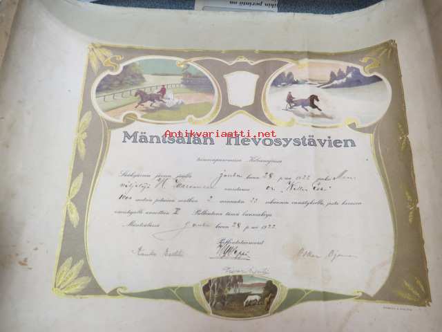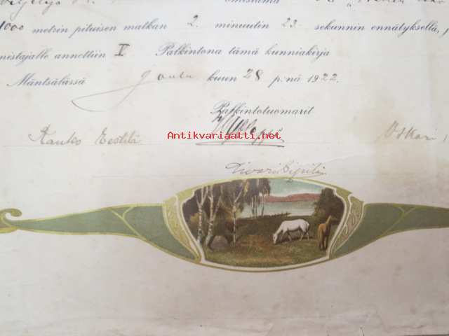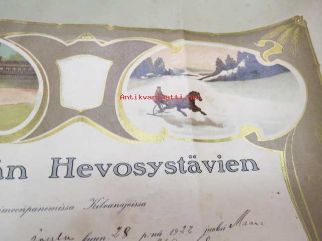 Kunniakirja Mäntsälän Hevosystävien toimeenpanemissa Kilvanajoissa Sääksjärven jäällä 28.12.1922 ori "Willin-Esko", omistaja maanviljelijä K. Saarenmaa, V palkinto