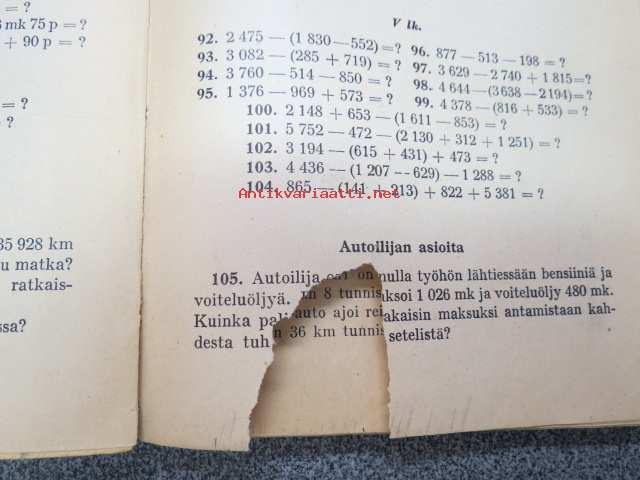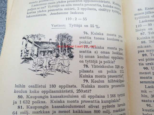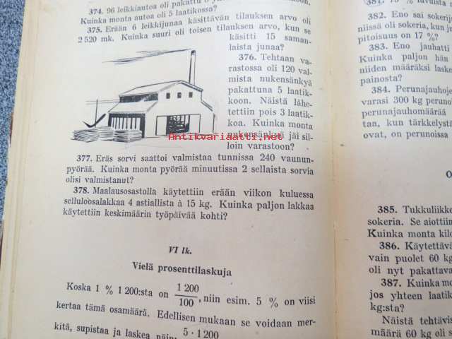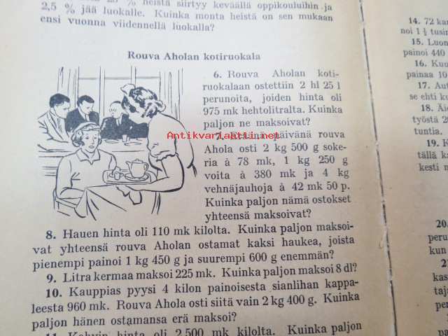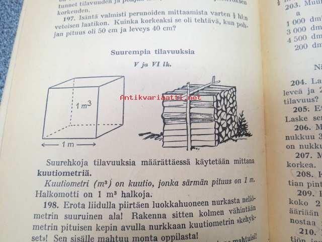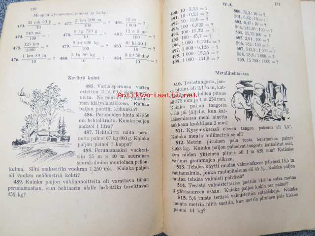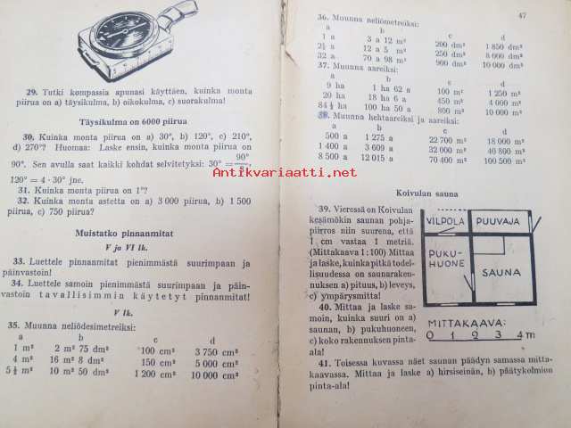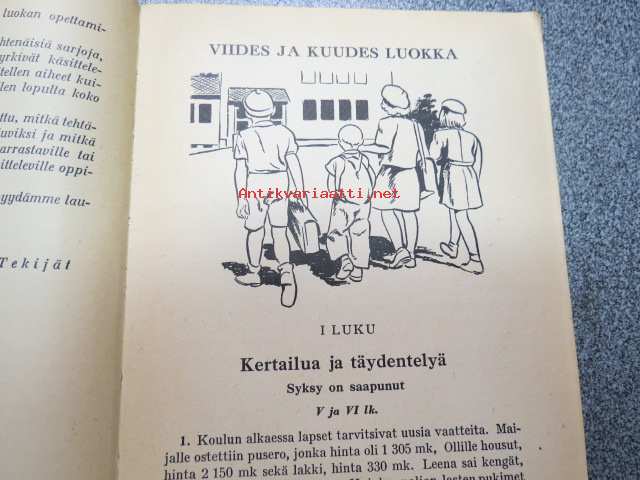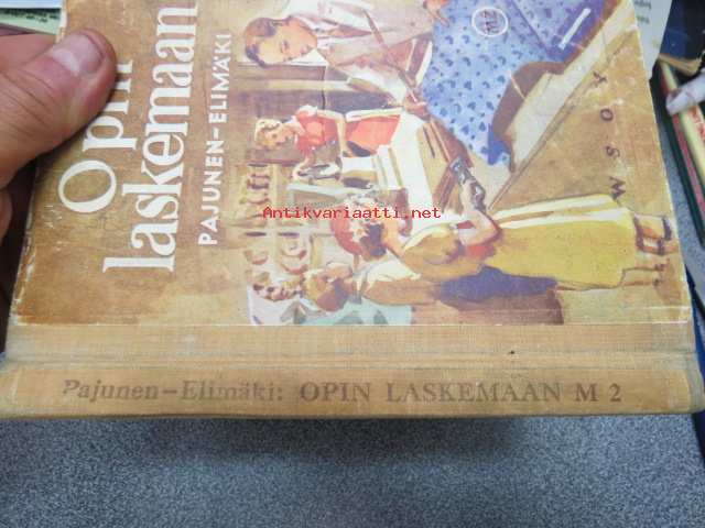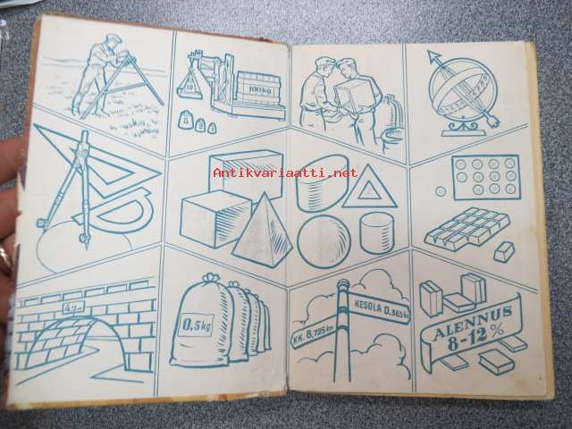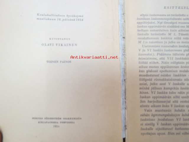 Opin laskemaan M 2 Maseudun kansakoulujen laskennon ja mitttausopin oppikirja yhdistetty V ja VI luokka, kuvittanut Olavi Vikainen